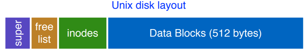 원본 UNIX FS 같은 경우는 간단하고 elegant하다. On Disk Layout은 이렇게 생겼다.