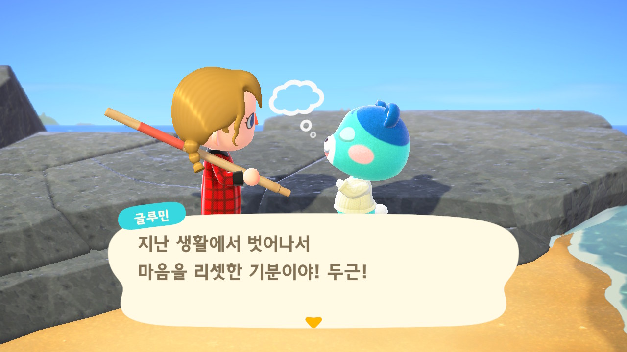 이렇게 휴지가 이사 간 뒤의 해프닝은 완료되었다. 한동안 마일리지 다시 모아야 이사 후에 대비를 할 테니 당분간 이사는 안 받는다... 너무 힘든 여정이었어. 아무튼 앞으로 글루민과 함께할 섬 생활이 기대된다. 그나저나 먹보 주민은 누굴 데려와야 하나... 케인 나가면 그 자리는 무조건 먹보 주민이어야 하는데..